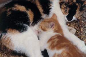 Da sie ihre Körpertemperatur noch nicht selbst regulieren können, ist neben der Nahrungszufuhr die Wärme der Katzenmutter überlebenswichtig. Dafür bekommen sie von ihrer Mutter durch die vom Schnurren ausgelösten Vibrationen den Weg gezeigt.